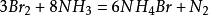溴單質(zhì)能與大部分單質(zhì)化合,部分需要加熱或其它條件。氫與溴在含鉑的石棉或硅膠催化下,加熱至200~400°C可以化合為溴化氫。溴可以把磷(0)氧化為磷(+3):  ,生成的三溴化磷為液體,摻雜著部分五溴化磷。溴與一氧化碳反應(yīng),可得到碳酰溴:  。與氨反應(yīng),生成溴化銨與氮氣:  。