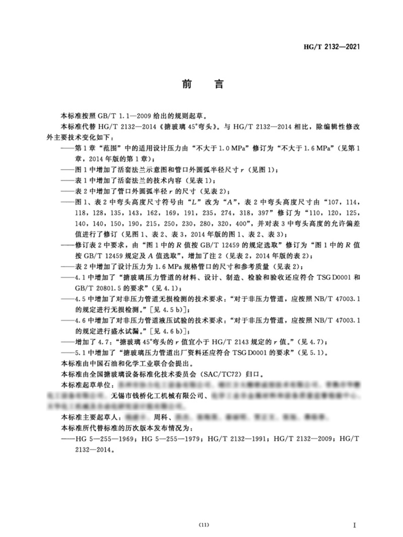 HG/T 2132-2021搪玻璃45°彎頭行業(yè)標準簡介和下載