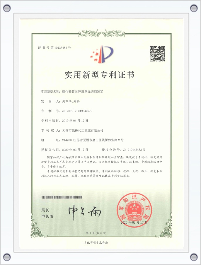 碳化硅管體環(huán)形單線切割裝置專利證書